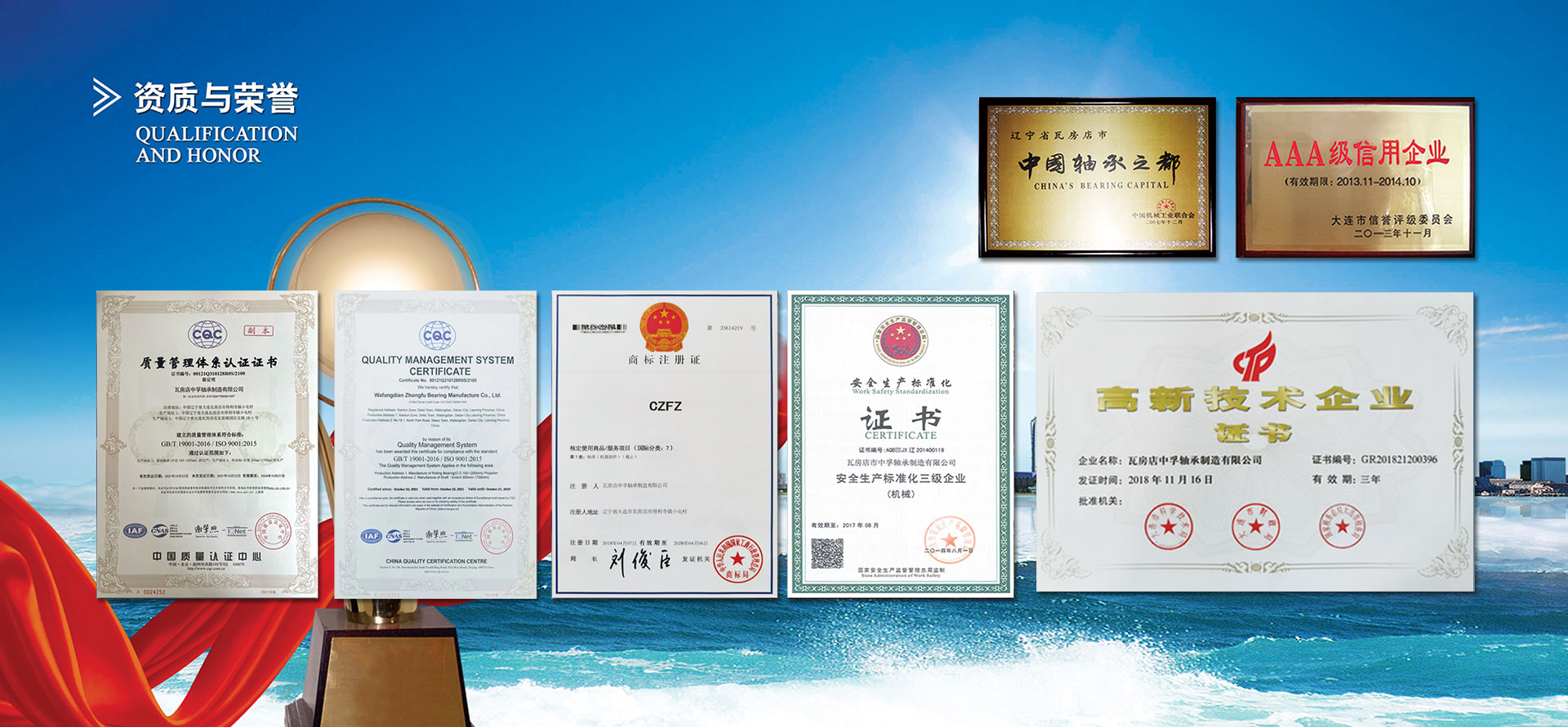 瓦房店中孚軸承制造有限公司專業(yè)生產(chǎn)礦用汽車軸承和配件,擁有獨(dú)立礦用汽車軸承設(shè)計(jì)和產(chǎn)品研制部門,具備開發(fā)礦用汽車軸承的能力,保證軸承的使用壽命和高穩(wěn)定性,并建立了完整的質(zhì)量體系,已通過(guò)ISO9001:2015質(zhì)量管理體系認(rèn)證。